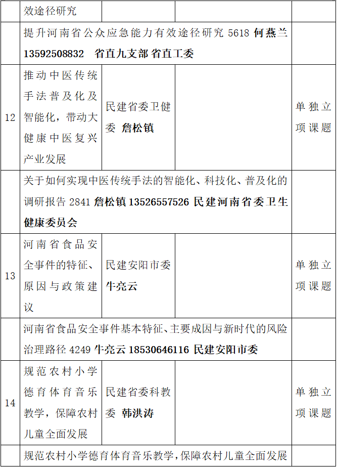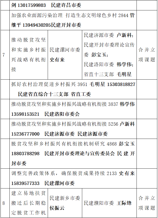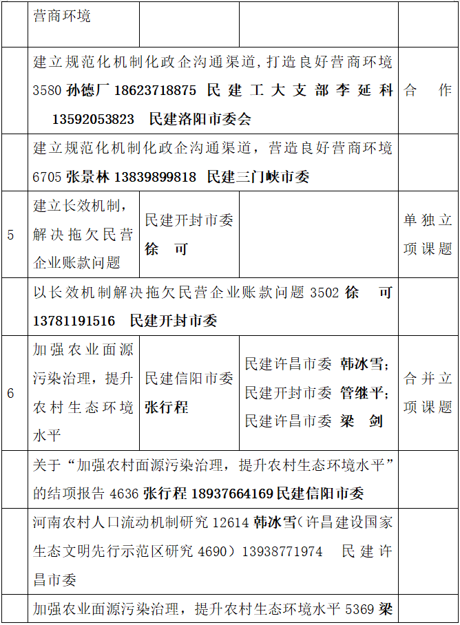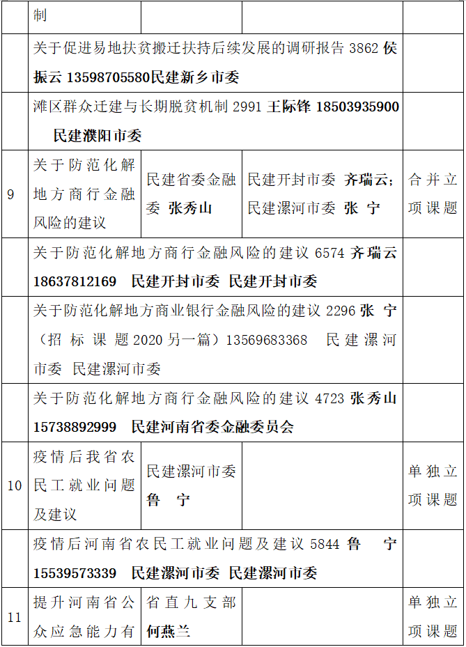 2020年民建省委招标课题立项信息及课题负责人信息